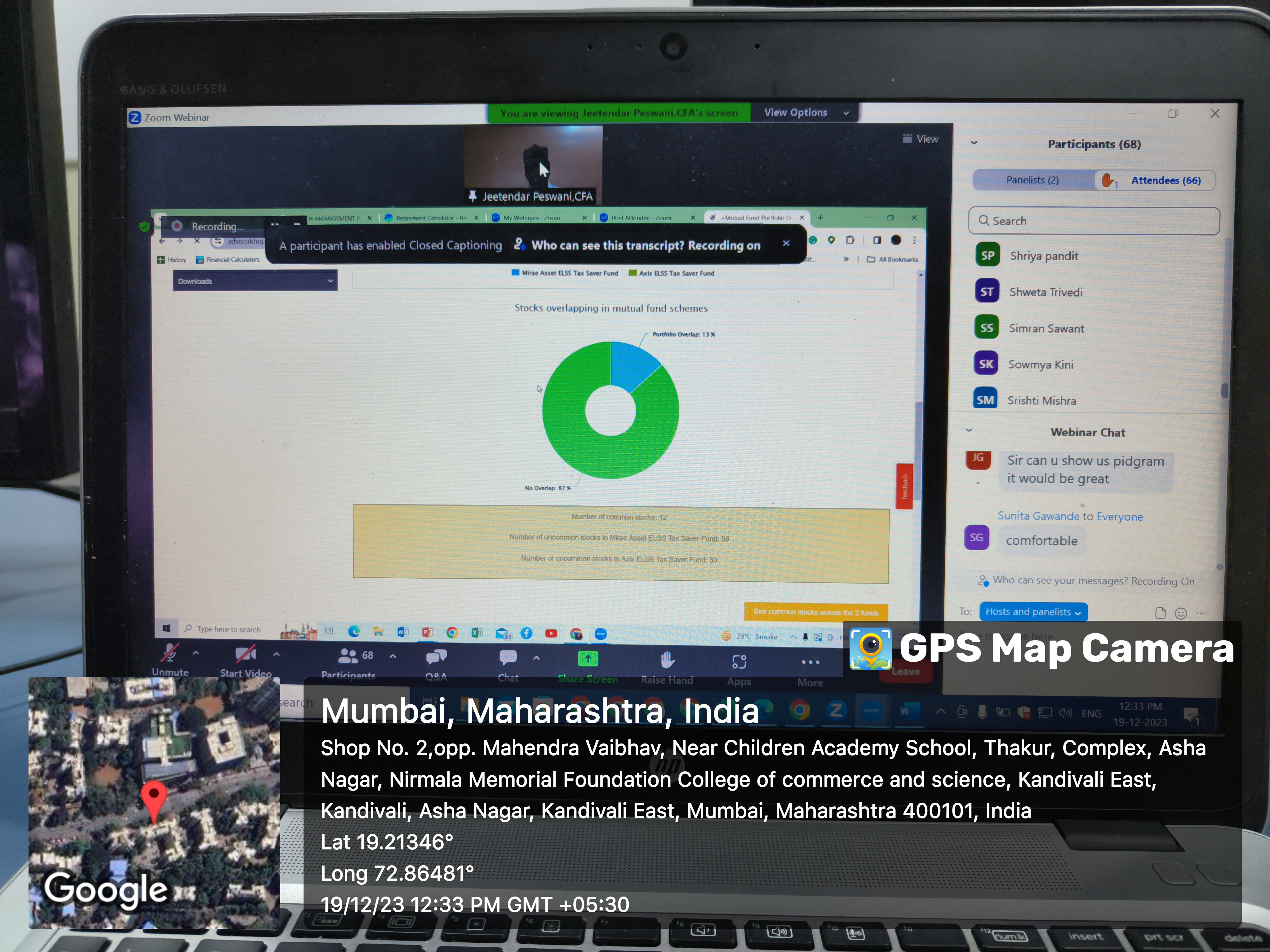 The Commerce and Accountancy Association of Nirmala Memorial Foundation College of Commerce and Science organized a prestigious national-level webinar titled “ Tools and Techniques of Financial Planning” in collaboration with Financial Planning Academy,Edutech.The webinar took place on Tuesday, 19 th December 2023 at 12.00 PM and attracted participants from across the nation, including Teachers, and enthusiasts interested in enhancing their knowledge of financial planning. The event aimed to provide participants with valuable insights into the latest tools and techniques used in the field of financial planning , featuring esteemed guest speakers CA Mr. Zaheer Sayed (Director at Financial Planning Academy) and Mr. Jeetender Peswani ( CFA, USA). The insights shared by CA Zaheer Sayed on AI and RPA - Impact on Accounting and Finance and Mr. Jeetender Peswani on A TO Z OF Wealth Management added significant value to the understanding of contemporary issues in commerce and accountancy. Participants gained a comprehensive understanding of wealth management and AI and RPA in Accounting and finance. The event successfully achieved its goal of fostering learning and promoting awareness in the field of commerce. A total of 165 teachers registered and benefited from the webinar.