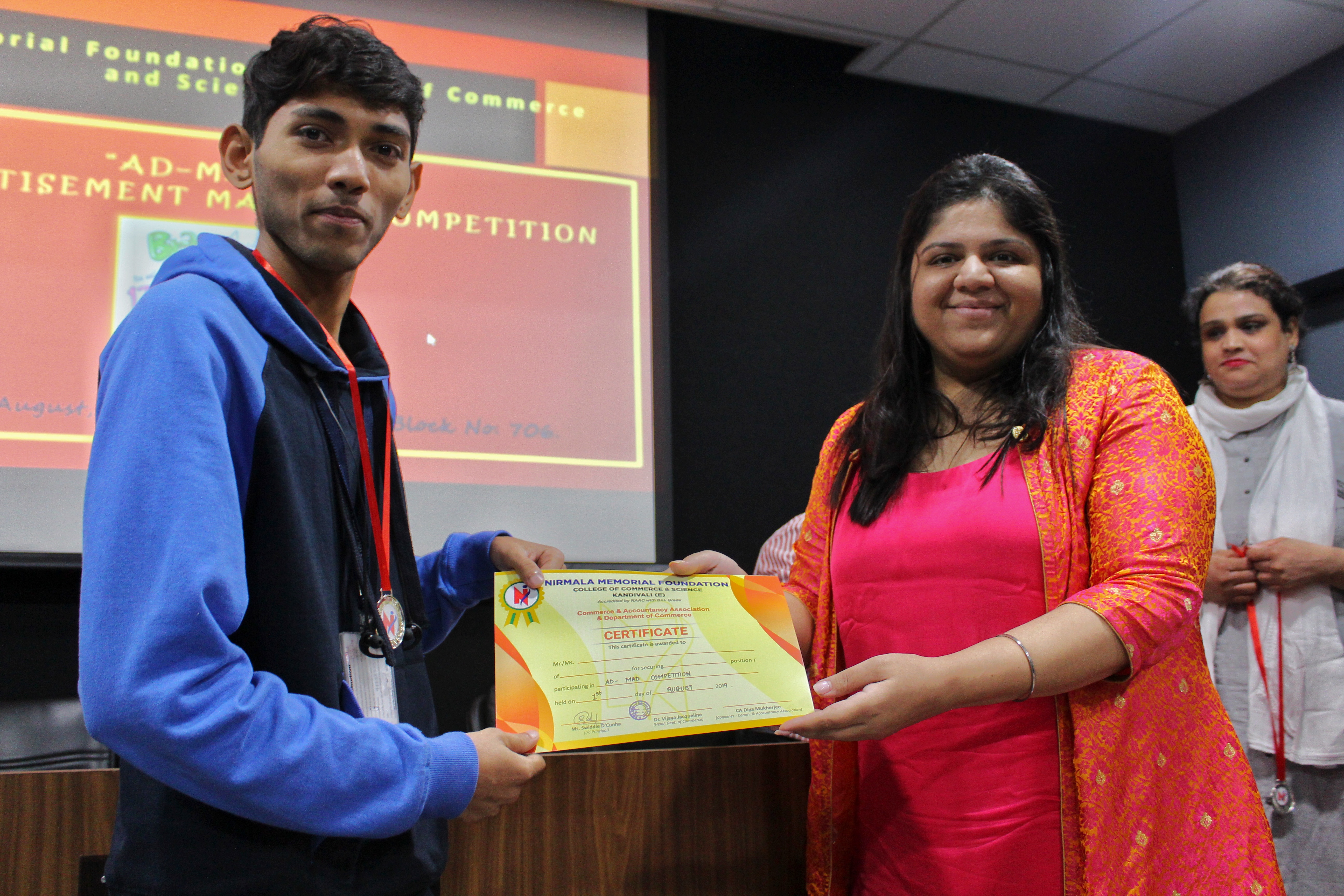 AD MAD, an advertisement making competition was held on Thursday, 1st August 2019. This competition was conducted by Commerce & Accountancy Association and Department of Commerce. The participants were required to make advertisements for a duration of 60-120 seconds on the topics of Social causes and issues. We had many participants who conveyed their messages and ideas beautifully and effectively through short amateur advertisement videos on Women empowerment, cleanliness after idol immersion, environmental protection, Road safety awareness etc. The event gave the students an opportunity to showcase there talents in expressing their ideas and concepts. The event was adjudged by very experienced and capable judges Dr. Poonam Kakkad and Prof. Deveeka Shetty, thus awarding the best teams for their very innovative creativity.