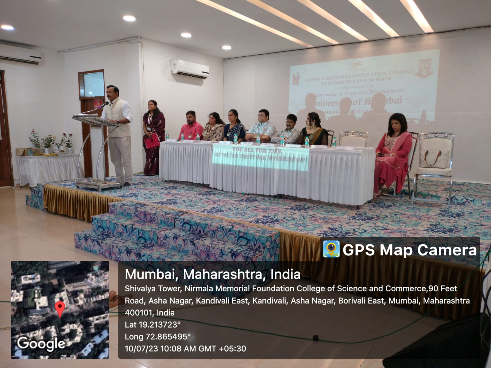 The 56th Youth Festival Workshop for Zone III and Zone V was held on Monday, July 10, 2023, by the college's cultural committee in collaboration with the Department of Students Development. Respected Principal, Honourable Mr. Nilesh Save, Cultural Coordinator at University of Mumbai, officially inaugurated the workshop. There were five sessions planned for the programme. Additionally present for the session and speaking to the audience were the Zonal Coordinators Dr. Dadarao Mhaske, Mr. Mahesh Deshmukh, Mr. Alok Hardikar, Dr. Monica Penkar, and Dr. Deepti Sadvelkar. Live demonstrations by University of Mumbai artists are used in each session to clarify the guidelines, concepts, and standards for each event.The training was attended by 125 cultural conveners and student coordinators.