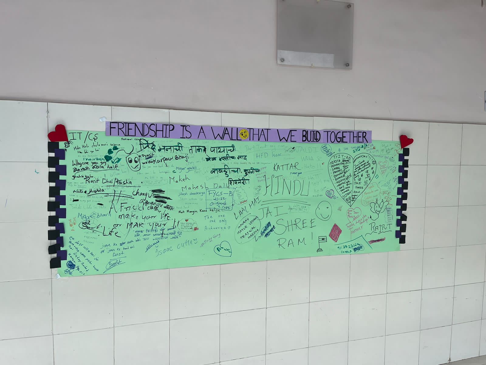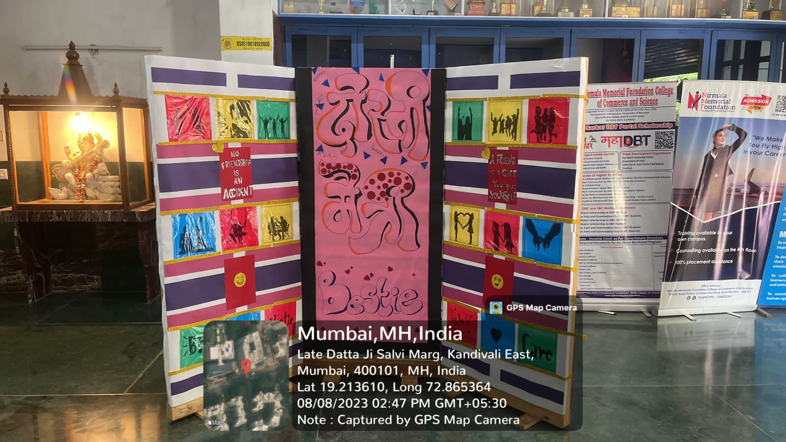 The cultural committee of the college organized Friendship and Chocolate day on Tuesday, 08th August, 2023. It was a resounding success, fostering a sense of unity and appreciation among students. Students enjoyed the fun filled Bollywood quiz played in the classrooms, an interactive Friendship wall was set up where students could share their thoughts and expressions of friendship and stalls were put up by the learners for the sale of friendship bands, chocolates and gifts.