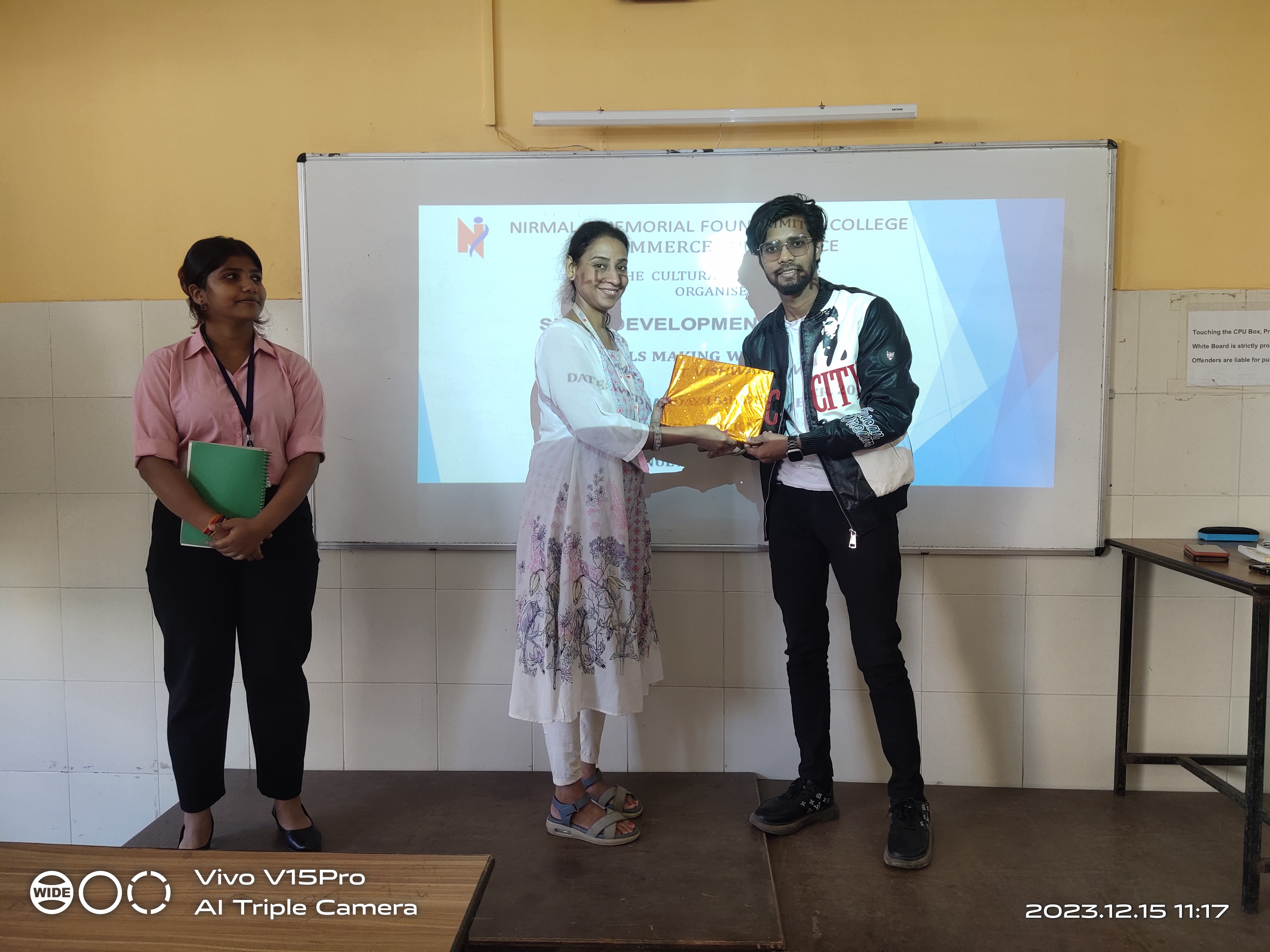 A Make-up Workshop was organized on Monday, 11th December 2023. The concept of peer learning was successfully carried out through this workshop. Our SYBMS, student Ms. Komal Sawant undertook the workshop for 15 students and gave them hands-on training for daily make-up to keep themselves up-to-date. Students learned the art of make- up with a lot of enthusiasm. Origami Workshop was organized on Wednesday, 13th December 2023. An expert in origami, Ms. Ashmita Dabholkar was the resource person for the workshop. The art of decorating Christmas tree with origami art was skill-fully taught to the students. 40 students participated in this workshop. Reel making Workshop was organized on Friday, 15th December 2023. Mr. Amit Vishwakarma, an alumnus of our college, was the resource person for the workshop. 28 students were given hands-on experience of making the reel and uploading it on social media. He also discussed methods of increasing the number of viewers and subscribers for your YouTube channel or Instagram page. The objective of Skill Development Workshops was to develop a passion for learning skills, learn something new, hands-on experience to build up the skills.