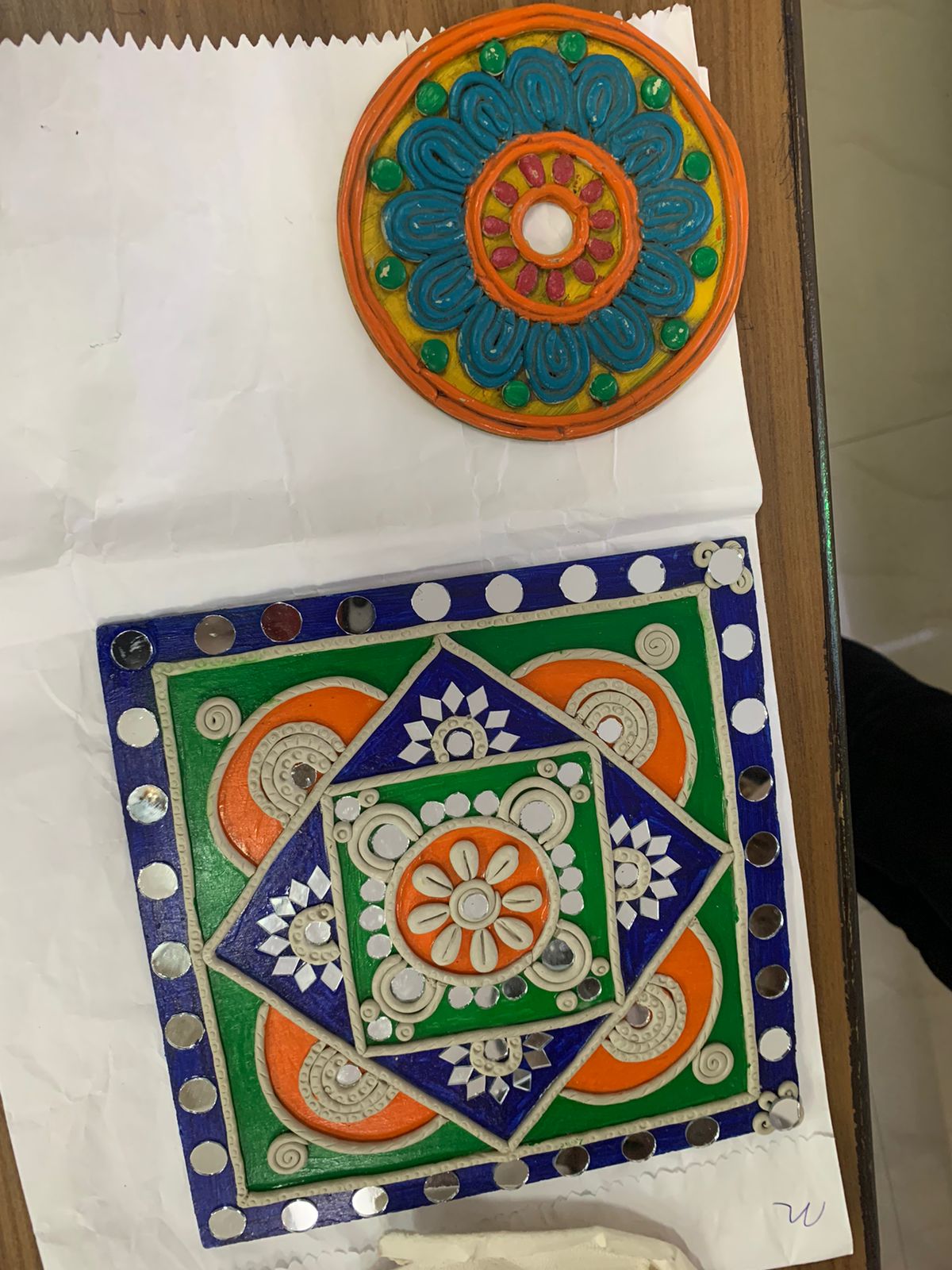 The Entrepreneurship Development Cell, in association with the Department of Lifelong Learning and Extension (DLLE), proudly presented an enlightening workshop on the mesmerizing art form of 'Lippan Art.' which was held on Friday, October 6th, 2023. This event was a celebration of creativity, culture, and community. Lippan Art, also known as Mud and Mirror Work, is a traditional Indian folk art that originates from the Kutch region of Gujarat. The workshop was a platform for participants to immerse themselves in this captivating craft and have their start-up. Participants had the opportunity to explore their artistic talents and bring to life the magic of mirrors and mud. The Resource Person for the workshop was Ms. Manjula Kamath, an experienced Fevicryl Professional artist. A total of 38 students benefited from the workshop.
