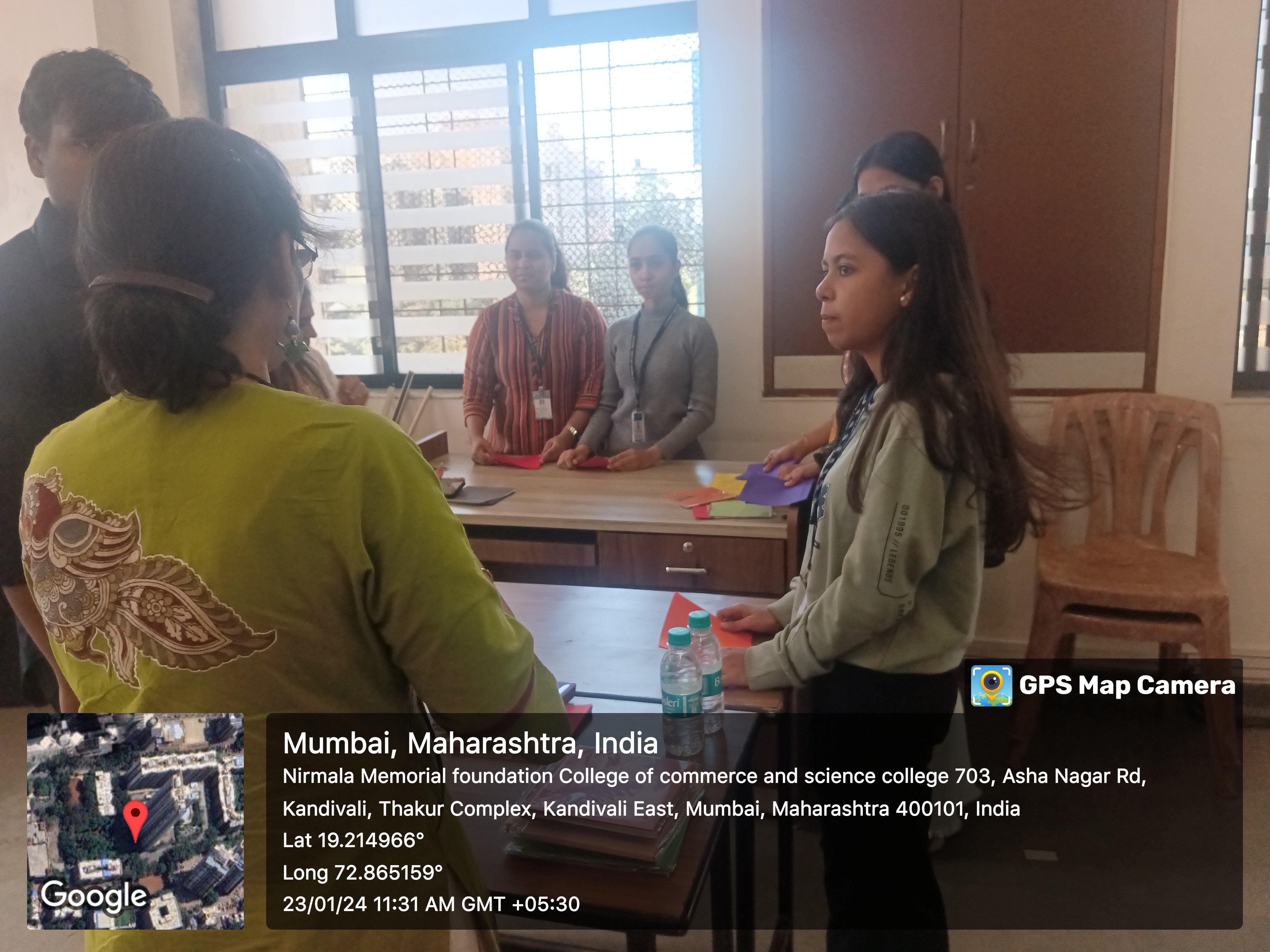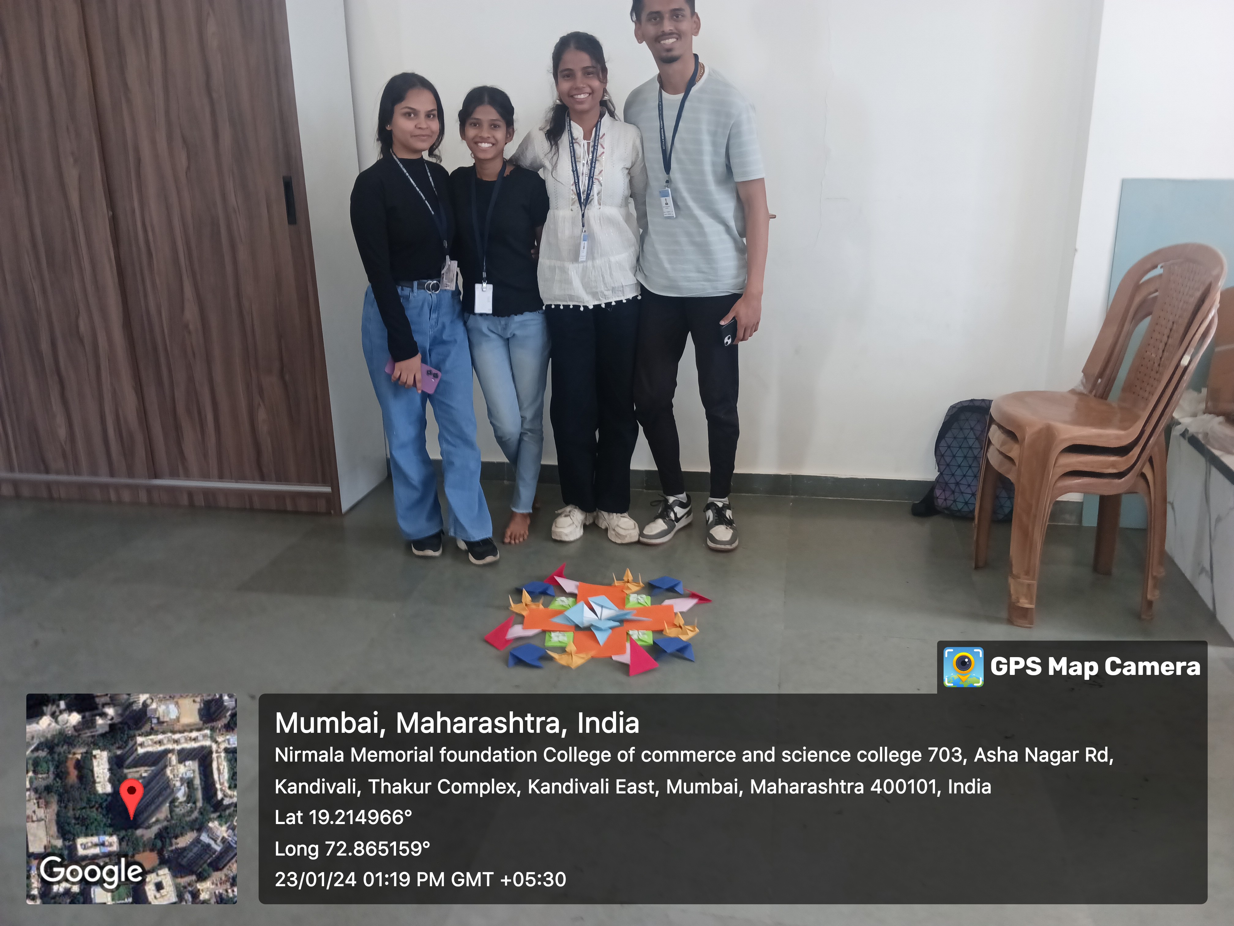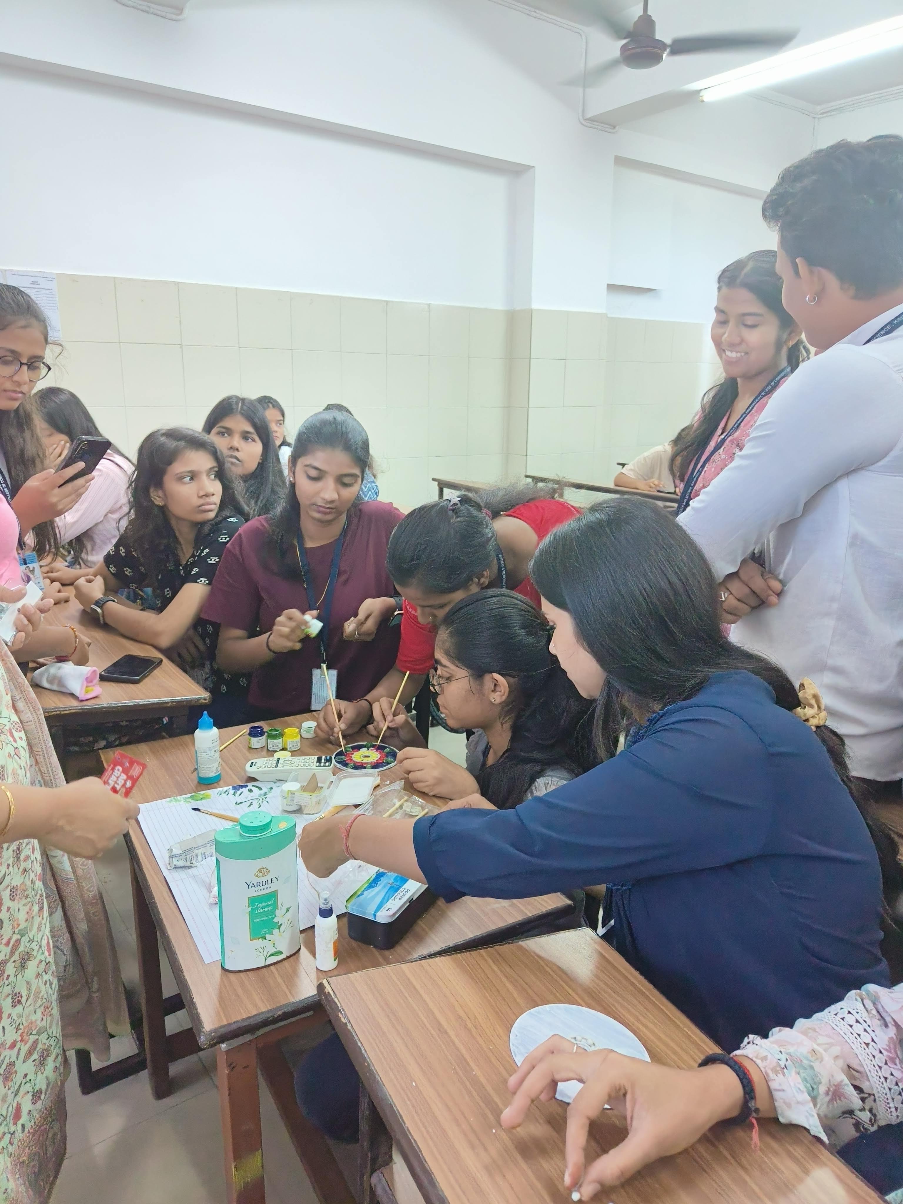 The Entrepreneurship Development Cell in association with Inner Wheel Club organised a Workshop titled “Rangavali- Rangoli with a twist” on Tuesday, 23rd January, 2024 from 11.30 am in Block No. 311. The Resource person of the said workshop was Ms. Asmita Dabholkar, an awardee of Manikarnika Amrita Sher-Gil Award 2022 and an origami artist. Aim of the workshop was to introduce the students to an out of the box art of rangoli making. In the workshop the students were introduced to a wonderful combination of origami and rangoli. In all a total of 24 Participants from different Programmes benefited from the workshop.
