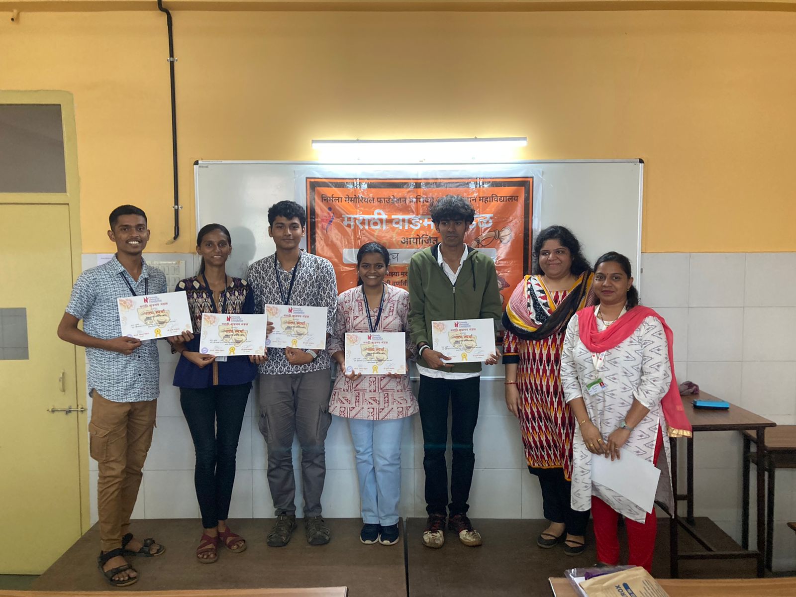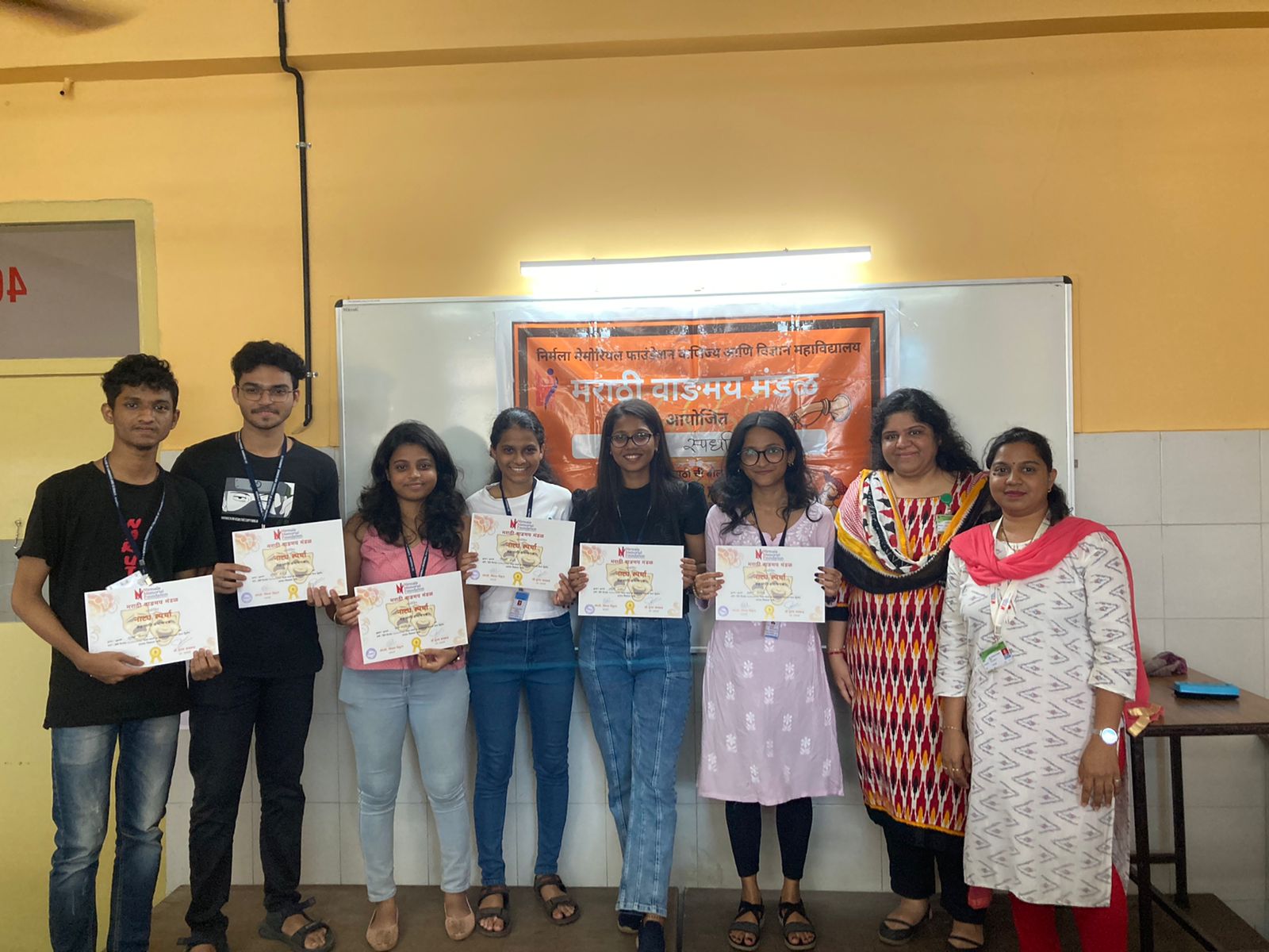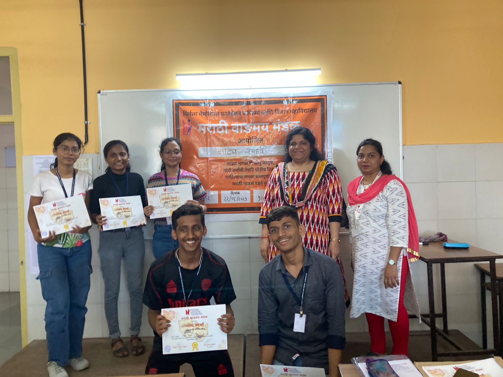The Marathi Vangmay Mandal organized a Marathi Essay Writing Competition on Wednesday, 22th January 2025 at 11:15 a.m. in Block No. 510. The competition was judged by Mrs. Meena Pawar, who was a lecturer of marathi. In total, 16 students benefited from the competition. Winners names are as follows: