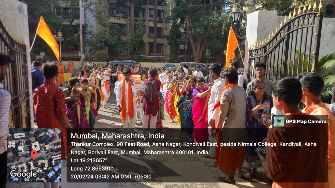 The Marathi Vangmaya Mandal of the college organized a Shiv-Jayanti Utsav a Road Procession and in Chawk Area. “Shiv-Jayanti Utsav '' is celebrated on the Shivaji Maharaj birth occasion. An event was organized for remembrance of Chatrapati Shivaji Maharaj, Tuesday, 20th February, 2024 at 09:00 am a road procession and in Chowk Area at 9:45 am students performed Manavi Manora, Palkhi and Lezim.We had a Road Procession with Dhol Tasha Pathak and Lezim from 09:00 am, on 90 feet road near the college area. Followed by an event in the Chowk area at 9:45 am with Dhol Tasha Pathak, Manavi Manora, Palkhi and Lezim. All departments actively participated in the event. It was an enthusiastic and overwhelming experience for all the participants.