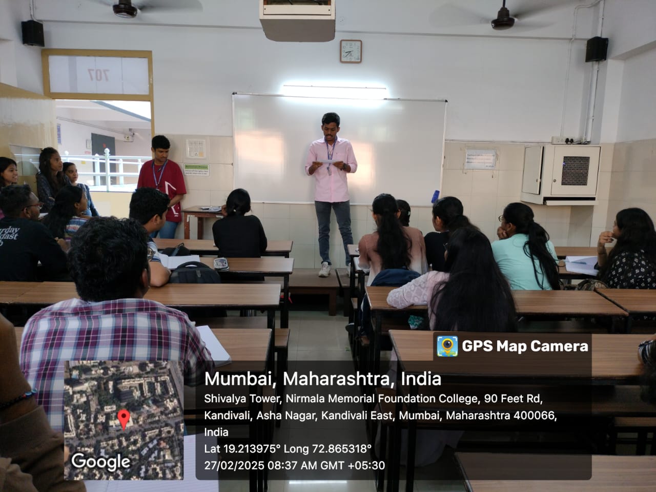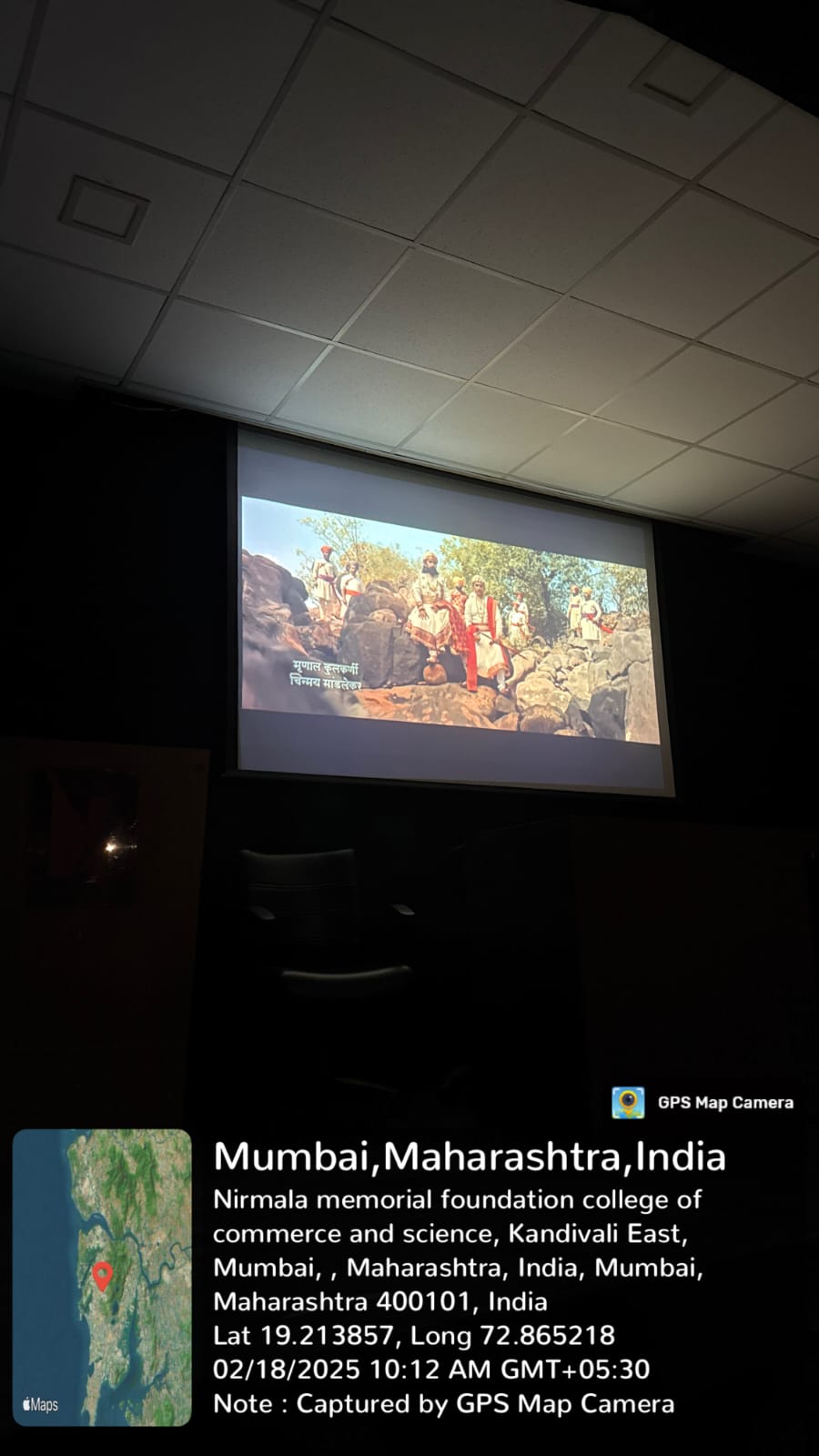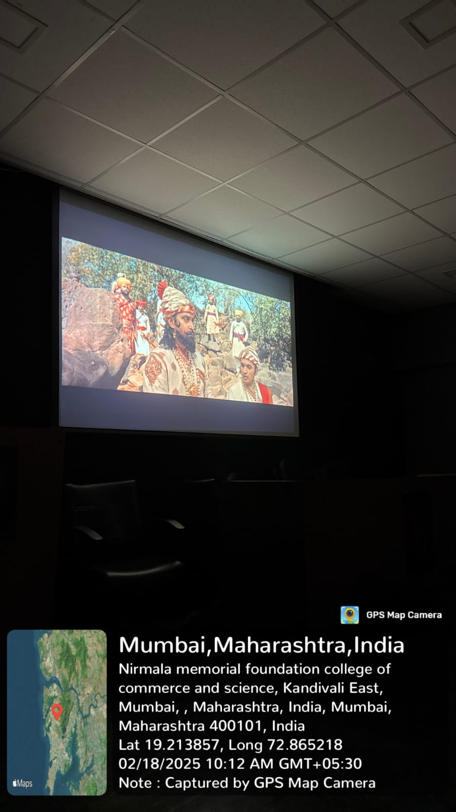The Marathi Vangmay Mandal of Nirmala Memorial Foundation College of Commerce and Science had organized a special screening of the movie "Pawankhind" on 18th February ,2025 in Block-706 (Mini auditorium) .The screening aimed to pay tribute to Chhatrapati Shivaji Maharaj, educate students about his life and times through the cinematic medium, and foster an appreciation for historical narratives. The event garnered enthusiastic participation from the students, with 81 attendees. The screening of "Pawankhind" served as a powerful reminder of Chhatrapati Shivaji Maharaj's legacy and the sacrifices made by Maratha warriors.The event successfully achieved its objectives, providing students with both an educational and culturally enriching experience.