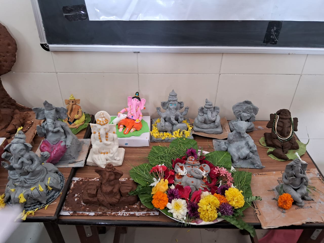 The Nature’s Club of our college organized the “Eco-friendly Ganpati Making Competition” on Thursday, 14th September 2023, from 11:30 am to 1:00 pm. A total of 20 students participated in the competition. Students created various Ganpati idols using different eco-friendly materials such as red soil, flour, clay, etc., channeling their creative ideas to make the deities more lifelike and vibrant. Dr. Rupali Wadkar served as the judge for the event.
