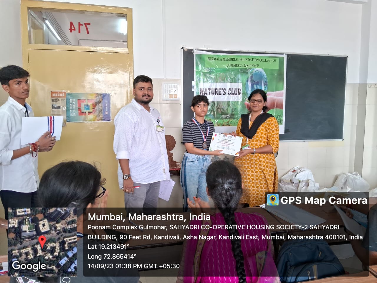 Nature’s Club successfully hosted the Best out of Waste Competition titled as "Green Creations: Waste to Wonder" on Tuesday, 20th August 2024. The event, centered around the principles of reduce, reuse, and recycle, saw enthusiastic participation of 21 students who demonstrated exceptional creativity and environmental awareness.Participants transformed waste materials such as tetra packs, bottles, newspapers, and old utensils into useful products within the allotted 1.5 hours. The competition was judged by Ms. Harisha Prajapati, a teacher at Nirmala English School and an expert in art and craft. The useful products made by participants were evaluated based on creativity, originality, and environmental impact.The winners were honored with medals and e-certificates. The First Position was won by Mr. Melwin Saji from FYBAF, who was awarded a Gold Medal. The Second Position was secured by Mr. Sujal Maurya from FYBAF, who received a Silver Medal. The Third Position was claimed by Ms. Riva Bejjanki from FYBAF, who earned a Bronze Medal. All participants received e-certificates in recognition of their commitment to sustainability.