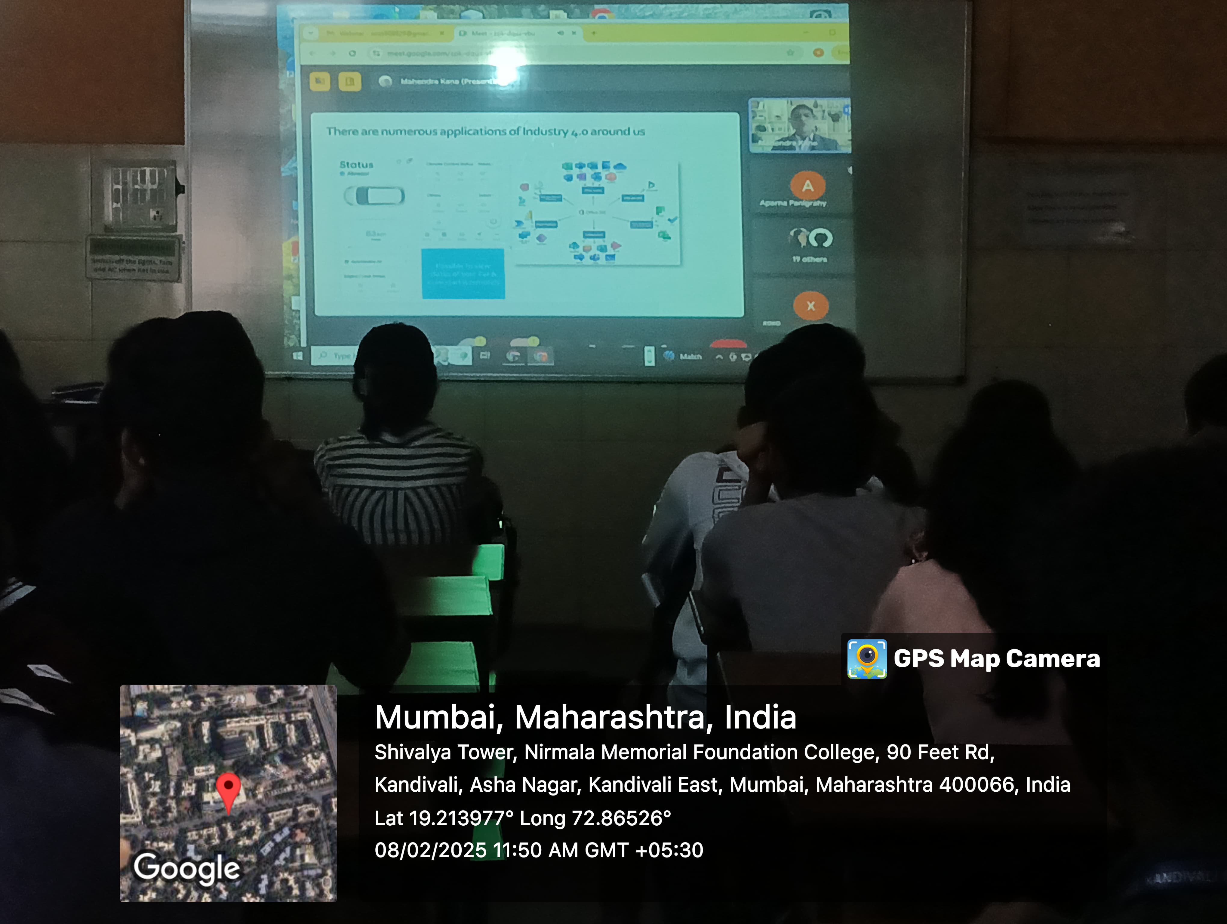 Department of B.Sc.IT had organised a webinar on 8th February 2025 on the Topic” Industry 4.0” for the Second Year and Third Year students of Information Technology. The session aimed to provide insights into the technological advancements driving change in the industry, including automation, data exchange, and modern manufacturing practices. The session was conducted by Mr. Mahendra Kane, a seasoned industry professional with extensive experience in various cutting-edge technologies. His vast knowledge and real-world experience in implementing Industry 4.0 technologies in organizations made him an ideal speaker for this webinar. His expertise in areas such as automation, IoT (Internet of Things), artificial intelligence (AI), machine learning, and smart manufacturing added immense value to the discussion. Total 103 students were benefited out of this webinar.