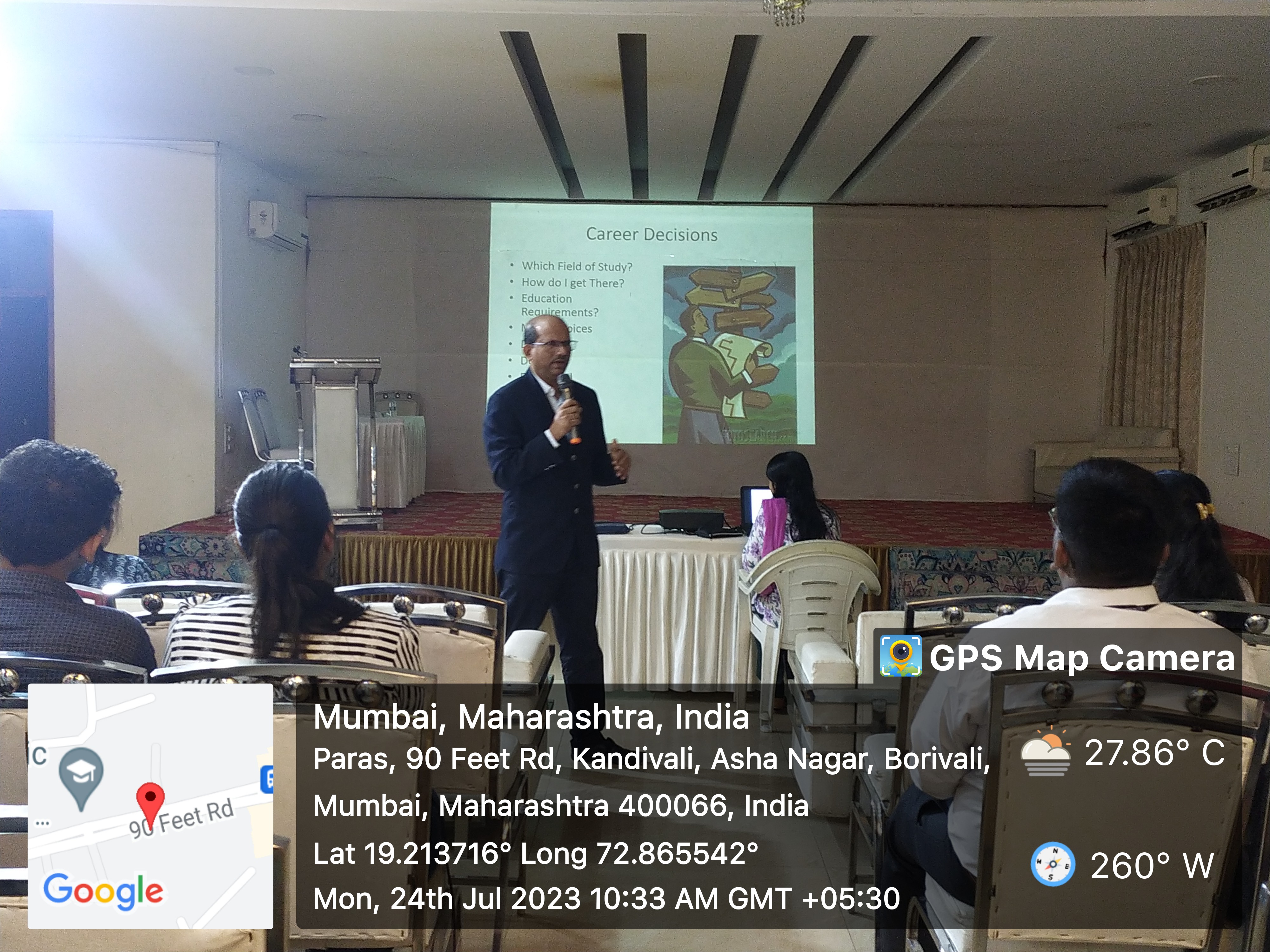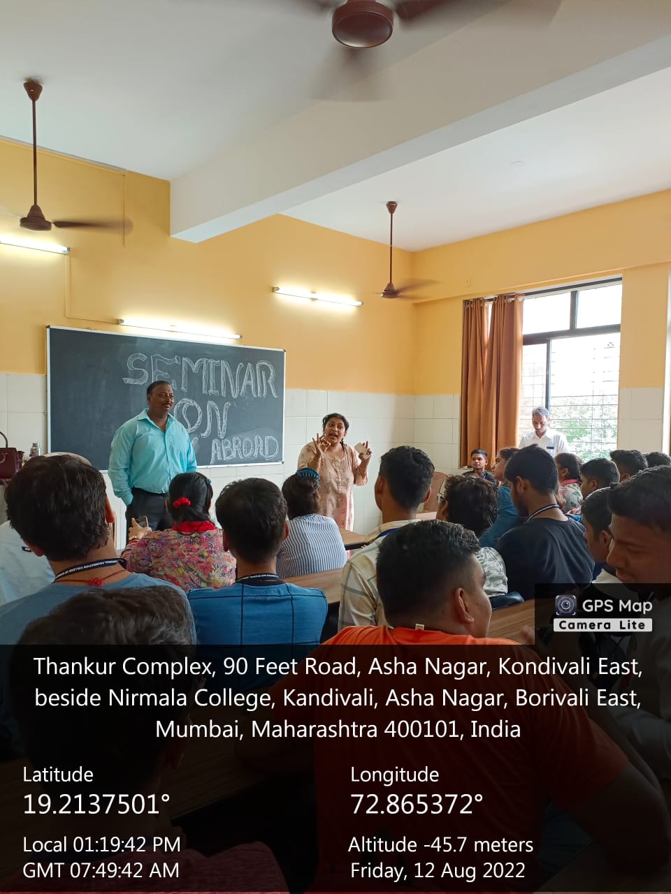 The Department of B.Sc.IT and B.Sc. CS had organised a seminar on “Career Counselling to study Abroad” for the students of B.Sc. IT and B.Sc. CS. The introductory part of the session was conducted by Mr. Nitesh Jogade, Deputy Manager T.I.M.E.This seminar was organised to let the students know about the pursuing higher study from Abroad and the process and procedure to apply for the same well in advance. The speaker also threw light on how to apply after graduation, expense of the courses, job package and demand of the courses in current industry etc. It was a quite interactive, informative and motivational session with maximum involvement of students.