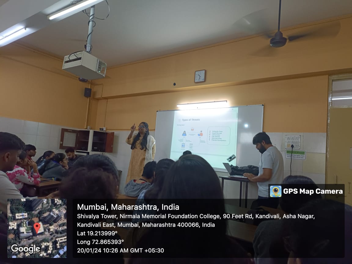 The Department of B.Sc.IT and B.Sc. CS had organised a Technical Session on “Cyber Security and Ethical Hacking” for the First Year Students of B.Sc. IT and B.Sc. CS.Co-ordinator of Dept. of B.Sc. IT and B.Sc. CS Ms. Vaishali Mishra welcomed Mr. Parshuram Vhatkar, Mr. Websecure Infosolutions Pvt Ltd and Prof. Shivkumar Chandey introduced them in front of the audience at 11.00 am.Speaker started the session by sharing basic information about cyber security and the basic terminologies associated with it. The introductory part was very informative to kick start the cyber security session.After the brief introductory part, the speaker has given live examples and demonstrated hacking practically in front of the audience.All the students took a lot of interest in such activities. Speaker discussed the SQL Injection attack also.Speaker has also shared the roadmap to make a career in the Cyber World.Knowledge shared by the speaker was good. All the students learned and enjoyed a lot.