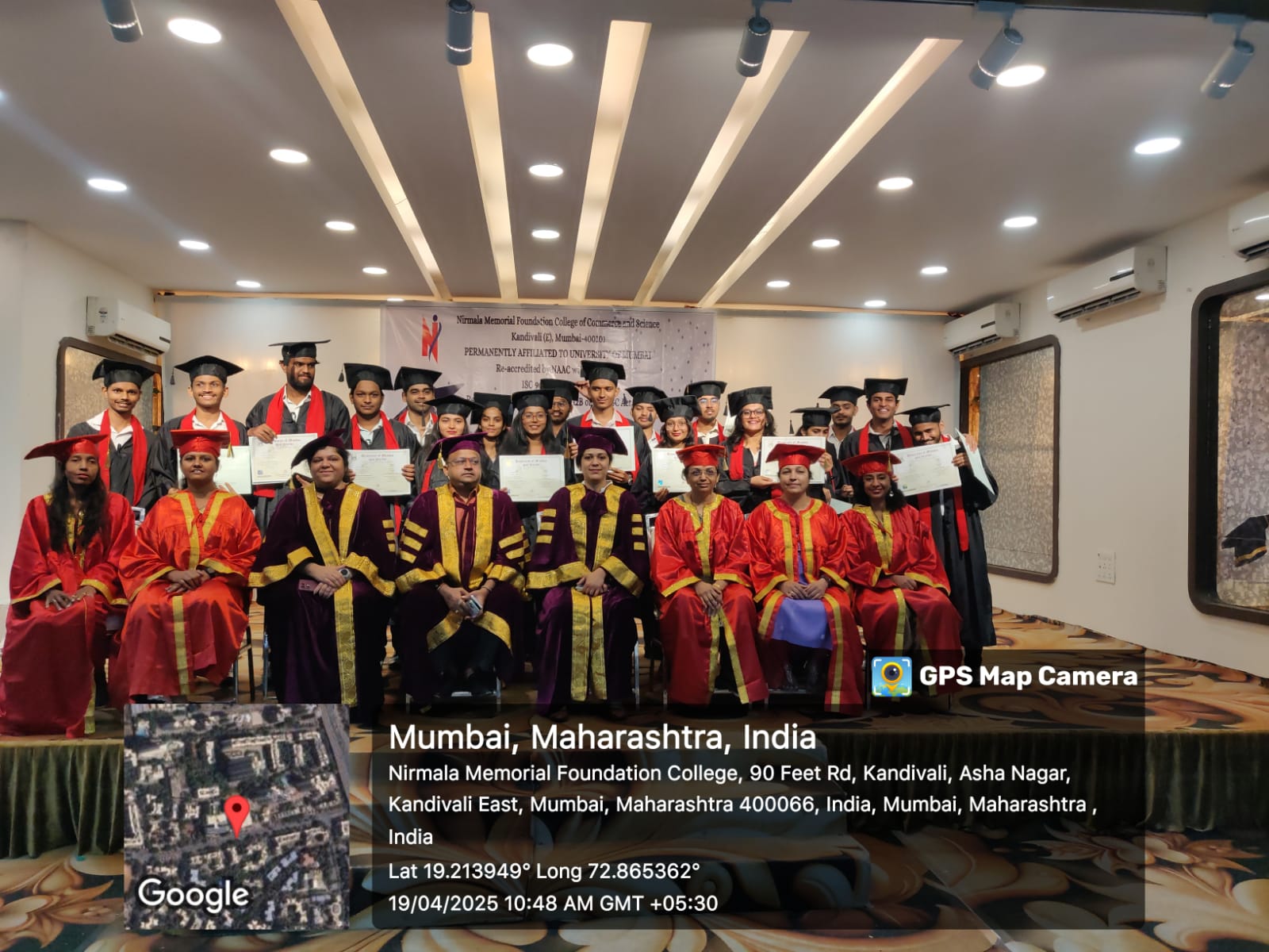 The Degree Certificate Distribution Ceremony was successfully held on Saturday, 19th April 2025, in the college auditorium. A total of 267 students were registered for it. The auditorium was filled with proud graduates, faculty members, and staff, creating a vibrant and celebratory atmosphere.The ceremony was graced by the presence of management representative Mr. Ajit Desai, I/C Principal Dr. Swiddle D'Cunha, Vice Principal Dr. Poonam Kakkad, and program coordinators.The ceremony began with a warm welcome address by the Principal, who congratulated the graduates and reminded them of their responsibilities as ambassadors of the institution.Degree certificates were distributed program-wise, with efficient coordination by the designated program in-charges and faculty members. The ceremony concluded with group photographs and refreshments.Overall, it was a memorable and proud day for all the graduates and the institution.