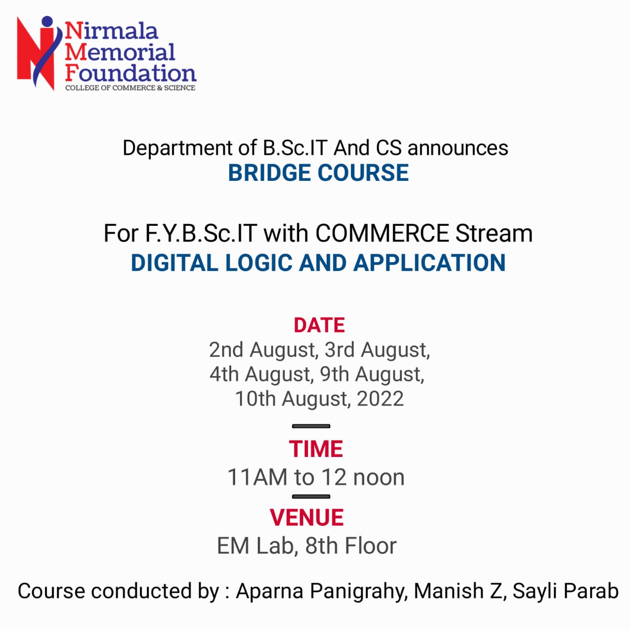 The Department of B.Sc. IT and B.Sc. CS had organized a Bridge Course for the First Year Learners of B.Sc. IT, those who have completed their Higher Education from Commerce Stream.The objective was to develop the understanding of basic computer fundamentals and to bridge the technological gap.Students had hands-on experience on the basic components of Electronics like gates,LED, Bread Board and the connection part. Students enjoyed the session thoroughly and the response was quite good.