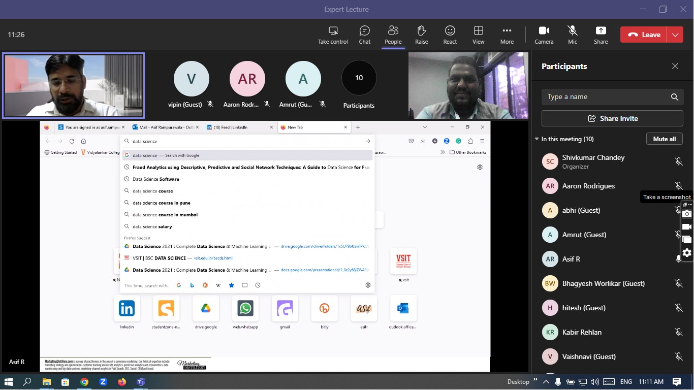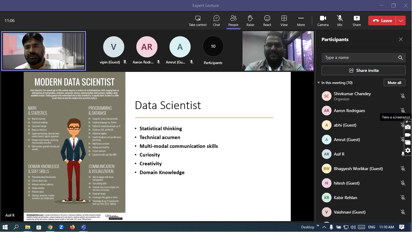 The Department of B.Sc.IT and B.Sc. CS had organised a Seminar on “Data Science Concepts with Machine Learning” for the Second Year and Third Year Students of B.Sc. IT and B.Sc. CS.Ms. Vaishali Mishra, Co-ordinator of Dept. of B.Sc. IT and B.Sc. CS welcomed the guest Ms. Babita Kachroo and Prof. Shivkumar Chandey introduced her to the audience at 10.00 am.Ms. Babita Kachroo started the session by interacting with the students by discussing the Data Science Concepts . Madam had given a wonderful seminar with practical proven approach. Statistical and Mathematical concepts were discussed which was required in DS and ML. Information given by the speaker was amazing. Ms. Kachroo had also thrown light on the career opportunities in DS and ML.