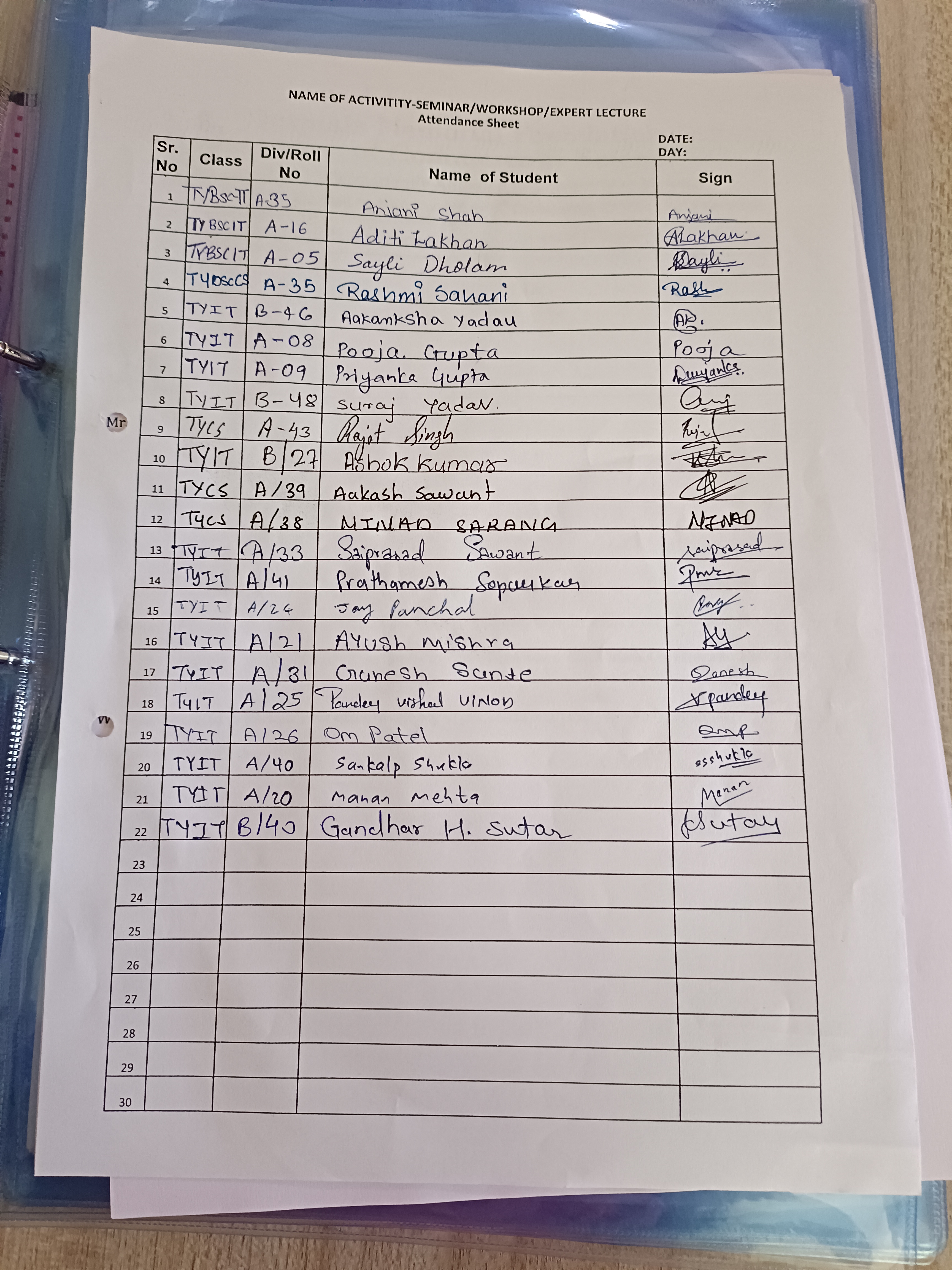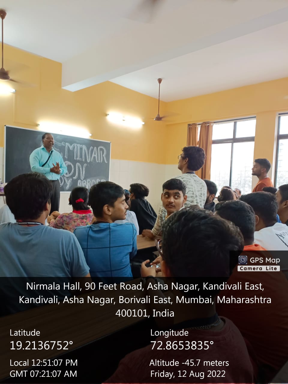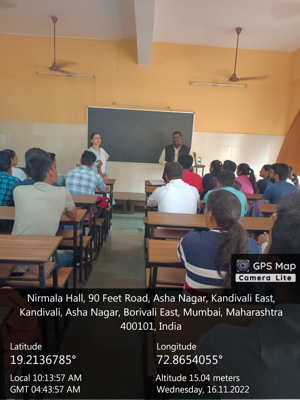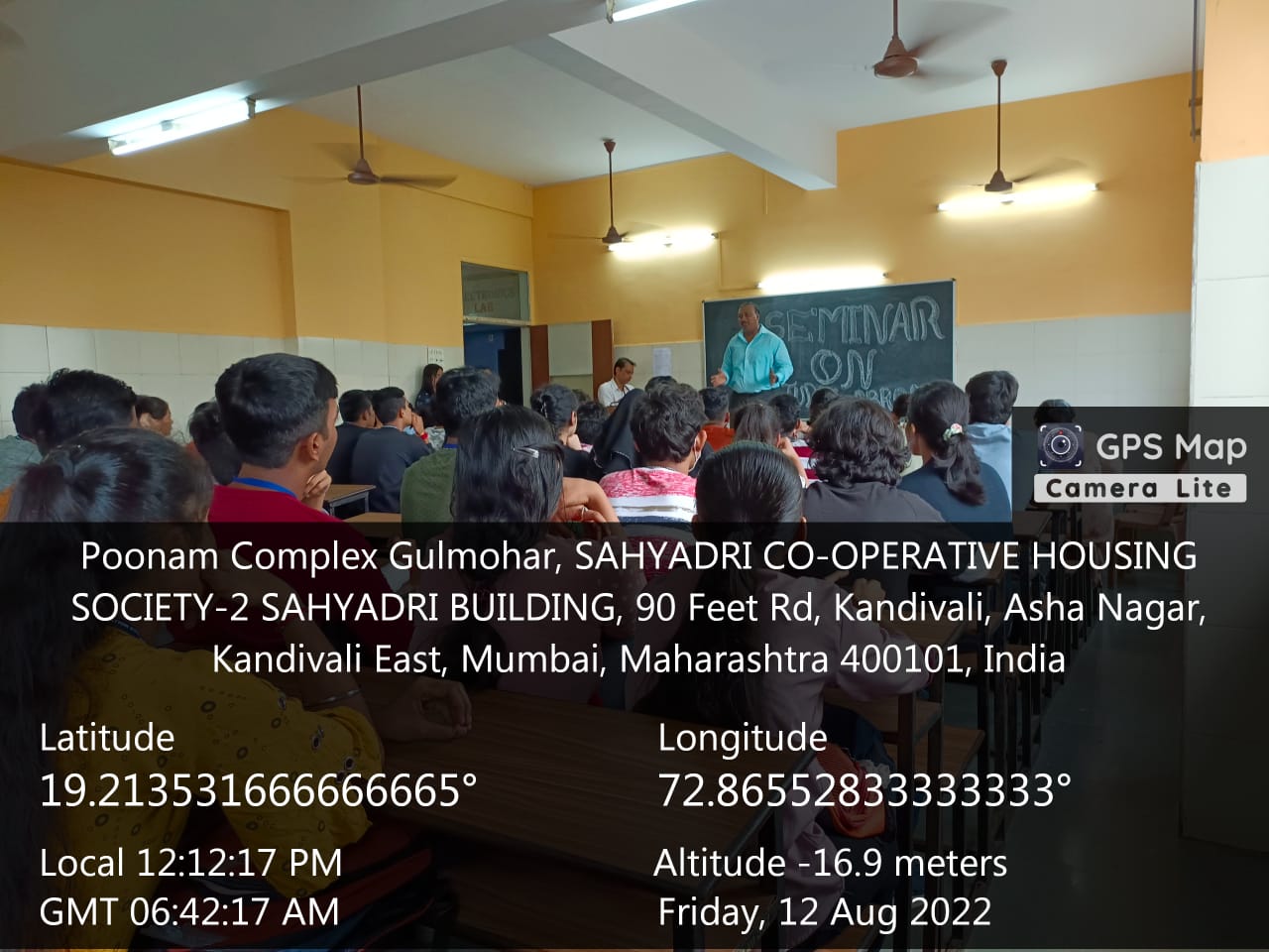 On Tuesday, 29th November, 2022 the Department of B.Sc. IT and B.Sc. CS had organized a Seminar on “Resume writing and Job opportunity” for SY Learners of B.Sc. IT and B.Sc. CS. Mr. Dharmesh Rathod and Mr. Bhisaji Surve were the Guest Speakers. 142 Students attended the seminar and benefited from it.It was a quite informative session.