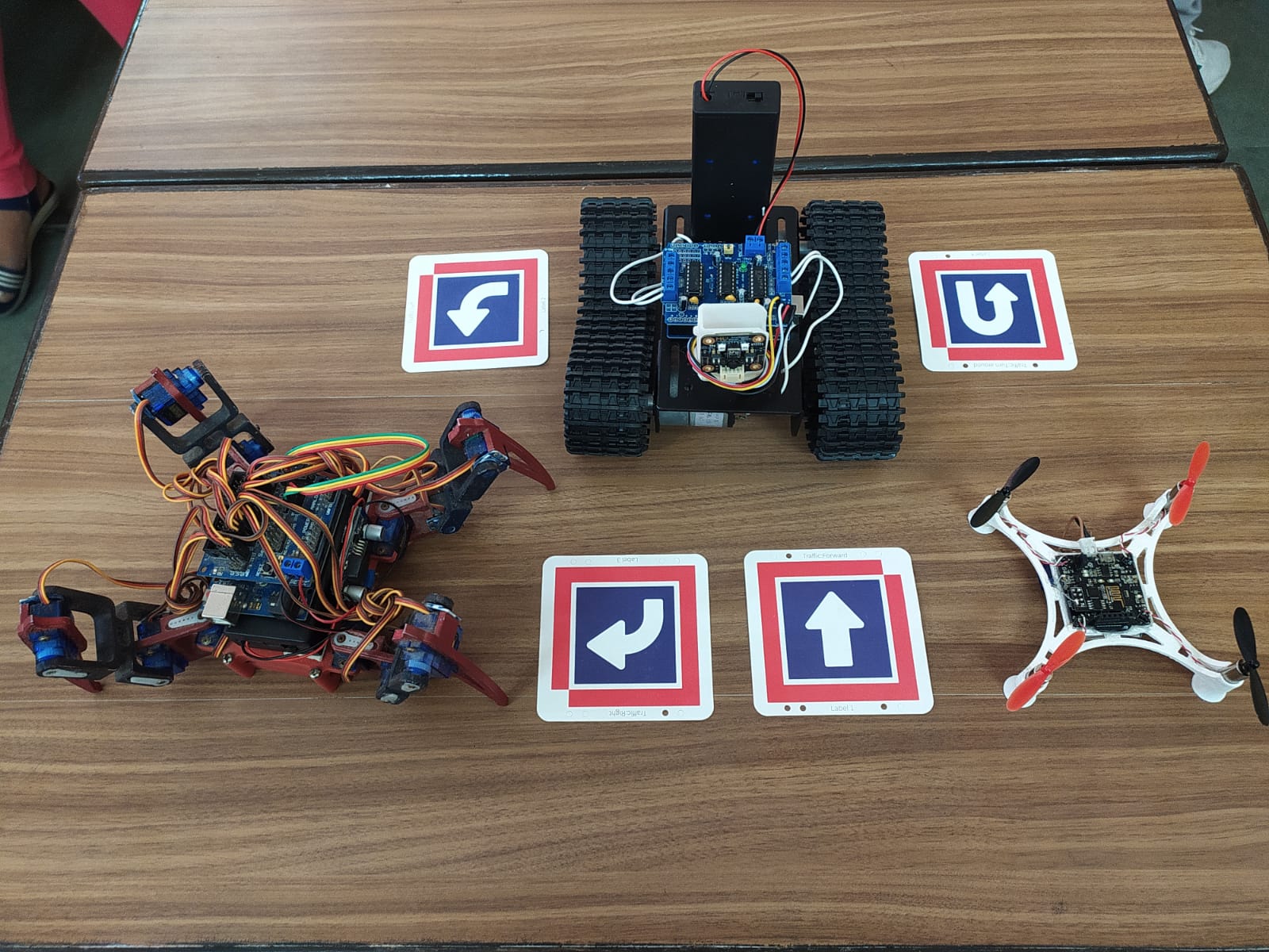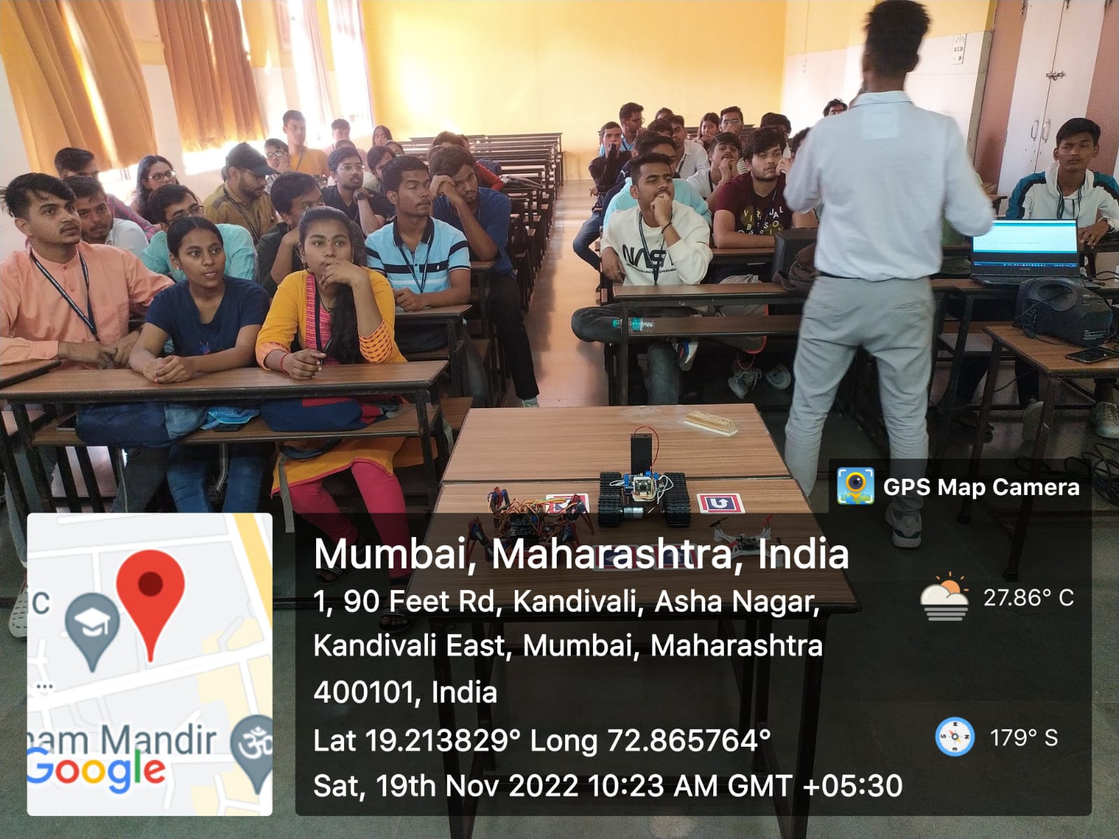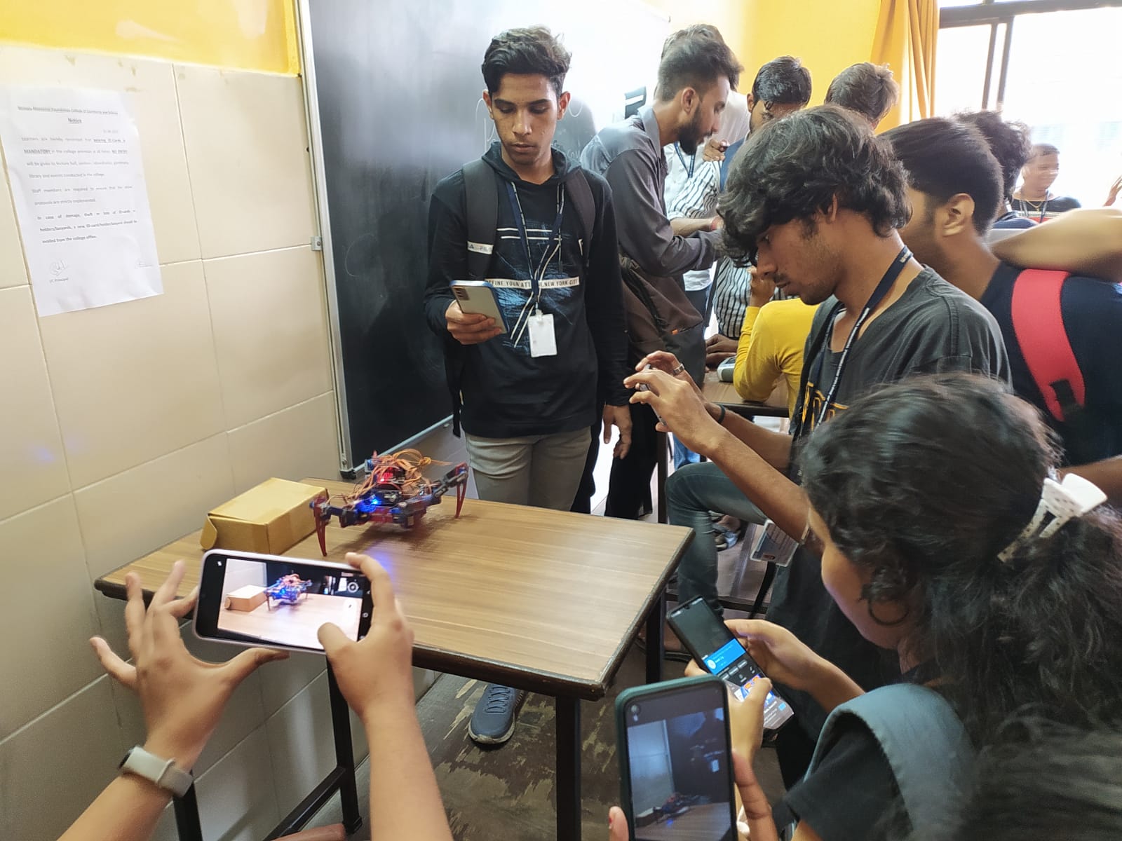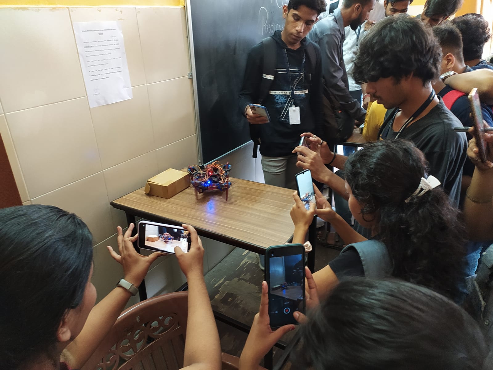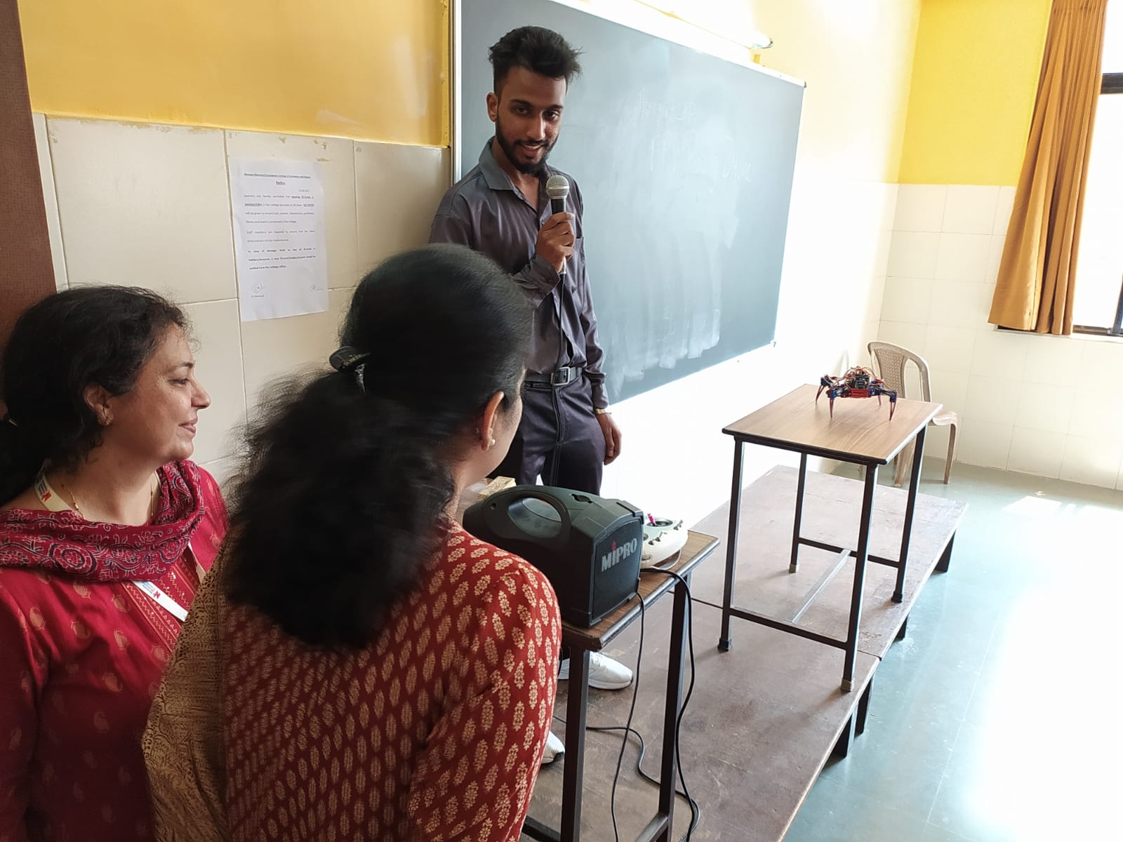 2. Spidey Bot, A small robot which makes moves like dance, greeting, and moving forward and backward. This part of the session was very live, interactive, and informative with maximum involvement of students. Speaker had also given the products in students' hands to know more about them. He taught the students about the components used to build these two products. Furthermore he explained the importance of components and their uses. Knowledge shared by the speaker was amazing. All the students learned and enjoyed a lot. Further they demanded the speaker and co-ordinator to organize the workshop for Robotics and IOT in which the students will get the opportunities to build such small robos.