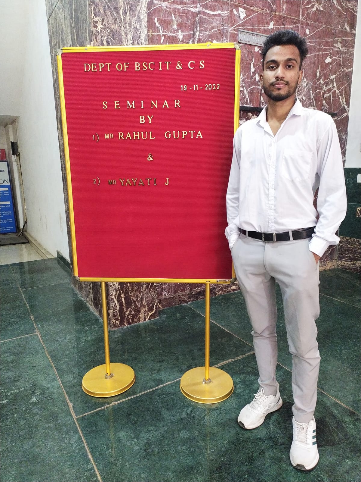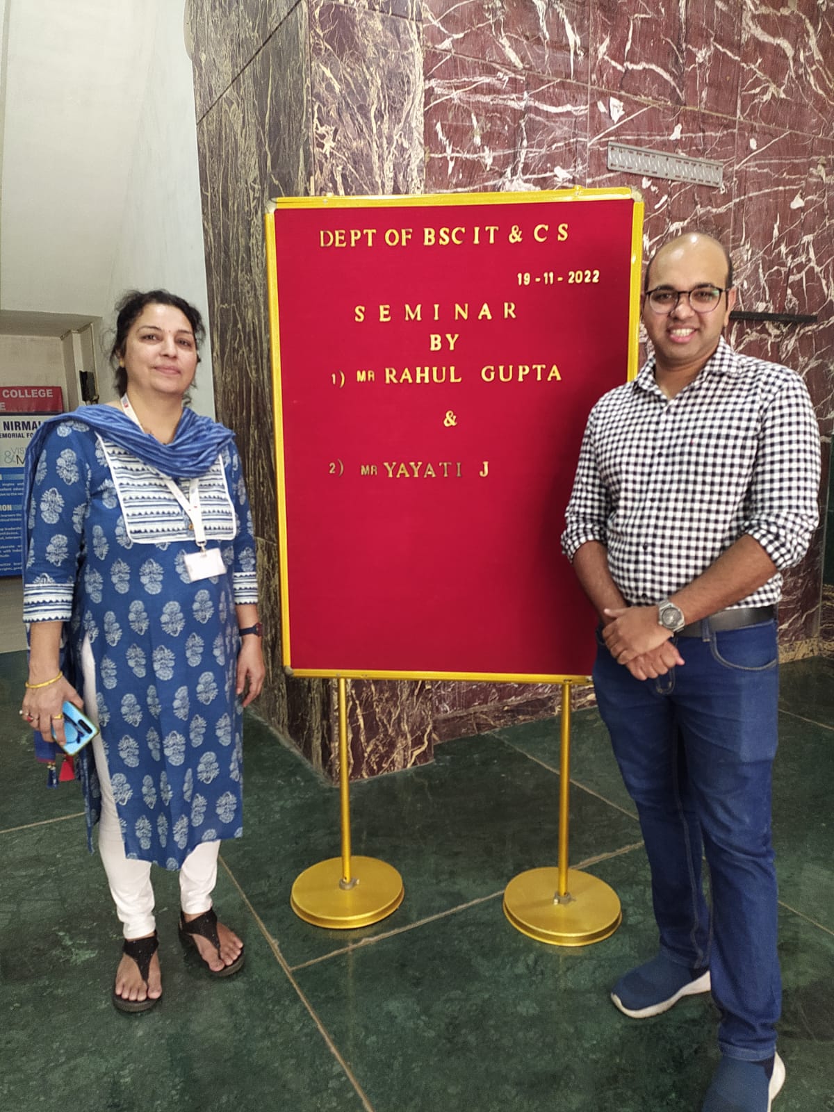 The Department of B.Sc.IT and B.Sc. CS had organised a Seminar on “Trending Technologies in IT Sectors” for the Second Year and Third Year Students of B.Sc. IT and B.Sc. CS. Mr. Yayati Jadhav is Senior Manager in NIEL SENIQ, He has started the session by discussing various latest and recent technologies. During his interaction he started testing the learner’s knowledge about recent trending topics in IT Sectors by asking basic questions related to Robotics, AR-VR, Big Data Analytics, Quantum Computing, 5G, IOT, Cyber Security, Blockchain, Cloud Computing and Artificial Intelligence.