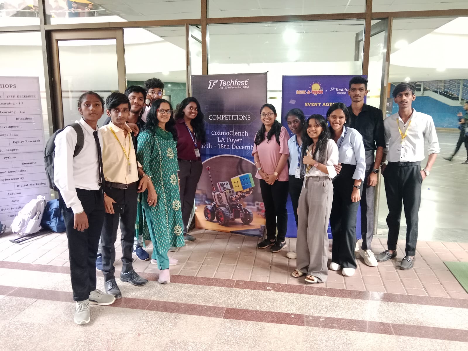 The IIT Techfest 2024 was held from 17th to 19th December 2024 in IIt Powai Campus, with a series of innovative and competitive events designed to challenge the participants’ skills in various domains of science, technology, and engineering. Among the events conducted, one of the prominent ones was CosmoClenze, which aimed at testing participants' abilities in problem-solving, teamwork, and their overall technical knowledge. This event consisted of five distinct stages, each designed to test the participants in different technical and problem-solving areas, under time constraints. Under the guidance of Dr. Aparna Panigrahy, the in-charge professor, all 7 students from our college participated and successfully cleared all five stages of the event within the given time frame.