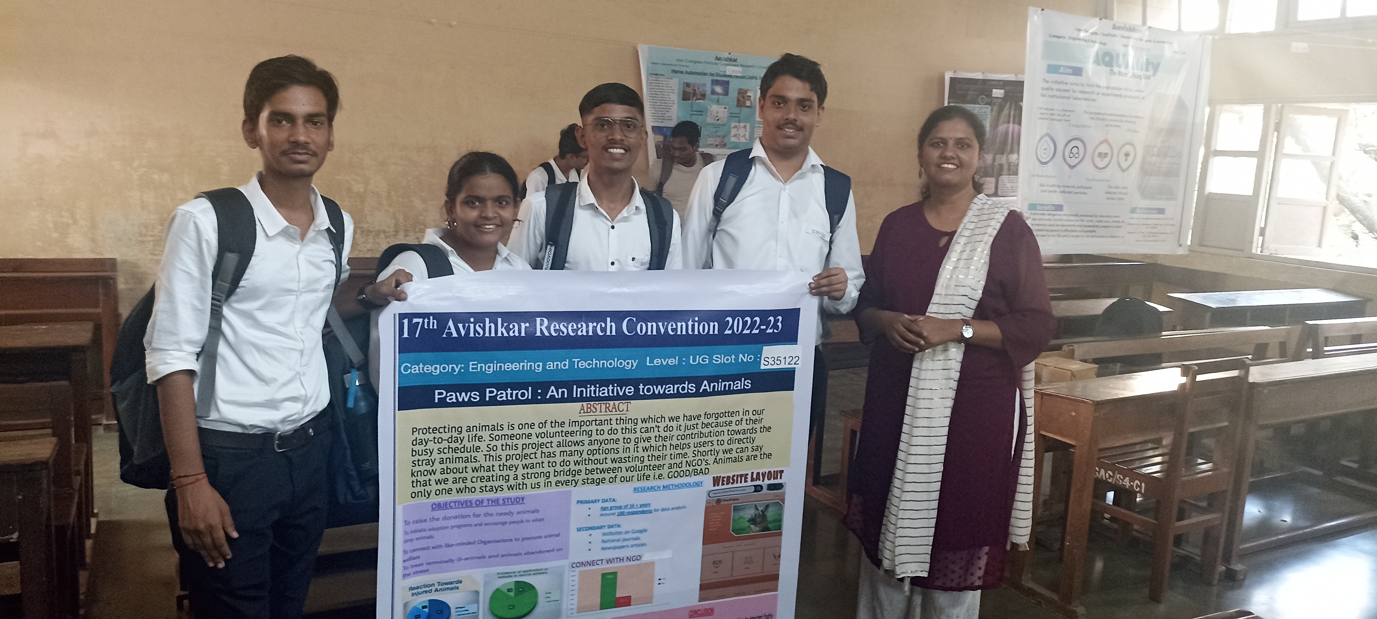 The Research Cell of the college encourages students to participate in the Aavishkar Research Convention in December 2023. Altogether, four (3 UG and 1 PG) groups (12 students) participated in a zonal round of Aavishkar, out of which 2 of them won for the Podium round at Zonal. Further, both groups participated in the Poster presentation round at the University of Mumbai. 1 candidate (Ms. Ridhisha Tarkari) was selected for the podium presentation. The following students participated: