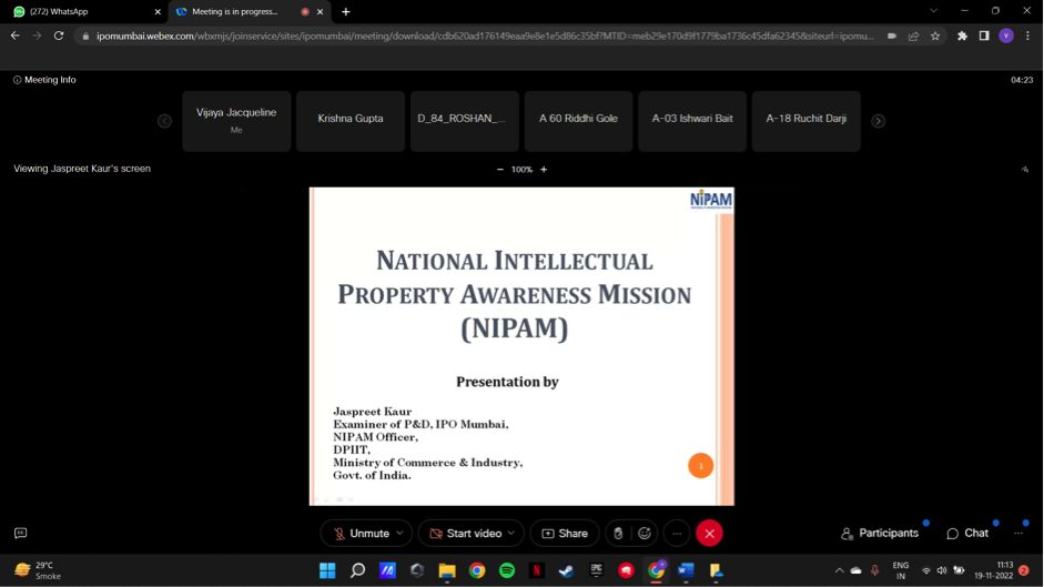 The Research Cell in collaboration with Ministry of Commerce and Industry, Government of India organized a One Day online webinar on IPR Awareness. The separate webinar was arranged for teachers and students. Around 120 teachers and 150 students joined in for the webinar. The sessions were organised on 19th November 2022. Both the sessions were highly appreciated by the audience.