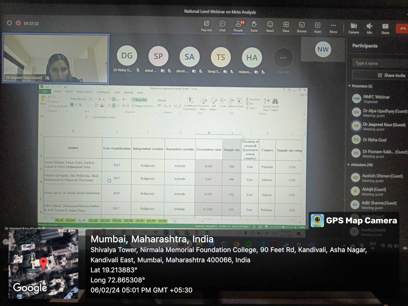 Research and IPR Cell organized a National Level Webinar on “Meta Analysis” on Tuesday, 6th February 2024 from 4.00 pm to 5.30 pm. The resource person was Dr. Jaspreet Kaur Bhasin, Associate Professor at Vivekananda Institute of Professional Studies, New Delhi. 81 participants attended the webinar from different parts of India, namely - Rajasthan, Gujarat, Haryana, Delhi, Himachal Pradesh, West Bengal, etc. The insights were given on how secondary data-based research papers will help with SLR and quantitative literature review. The objective was to validate the process of secondary research with the use of meta analysis.
