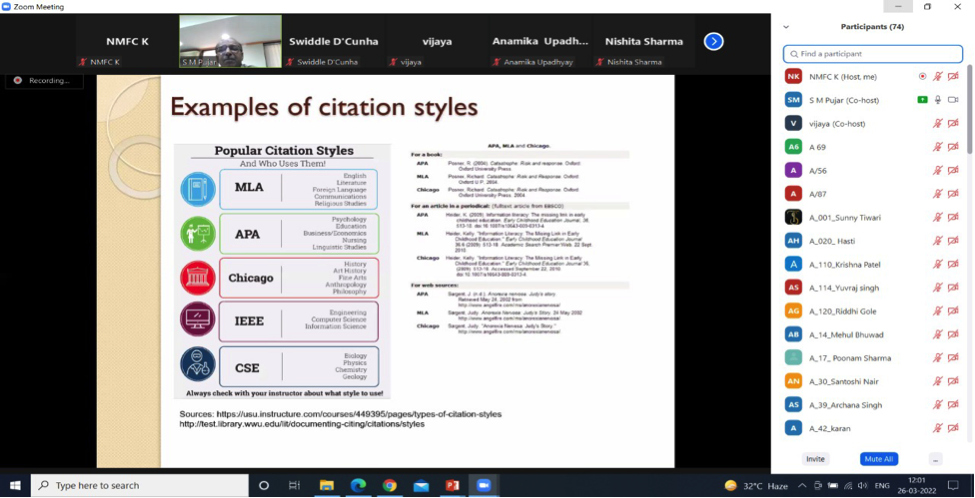 Dr. Anuradha J. Bakshi shared her expertise in the field of Review of Literature. She shared the examples from different journals and online research papers. Also, she highlighted the references at the end of the research. Participants highly appreciated the session.